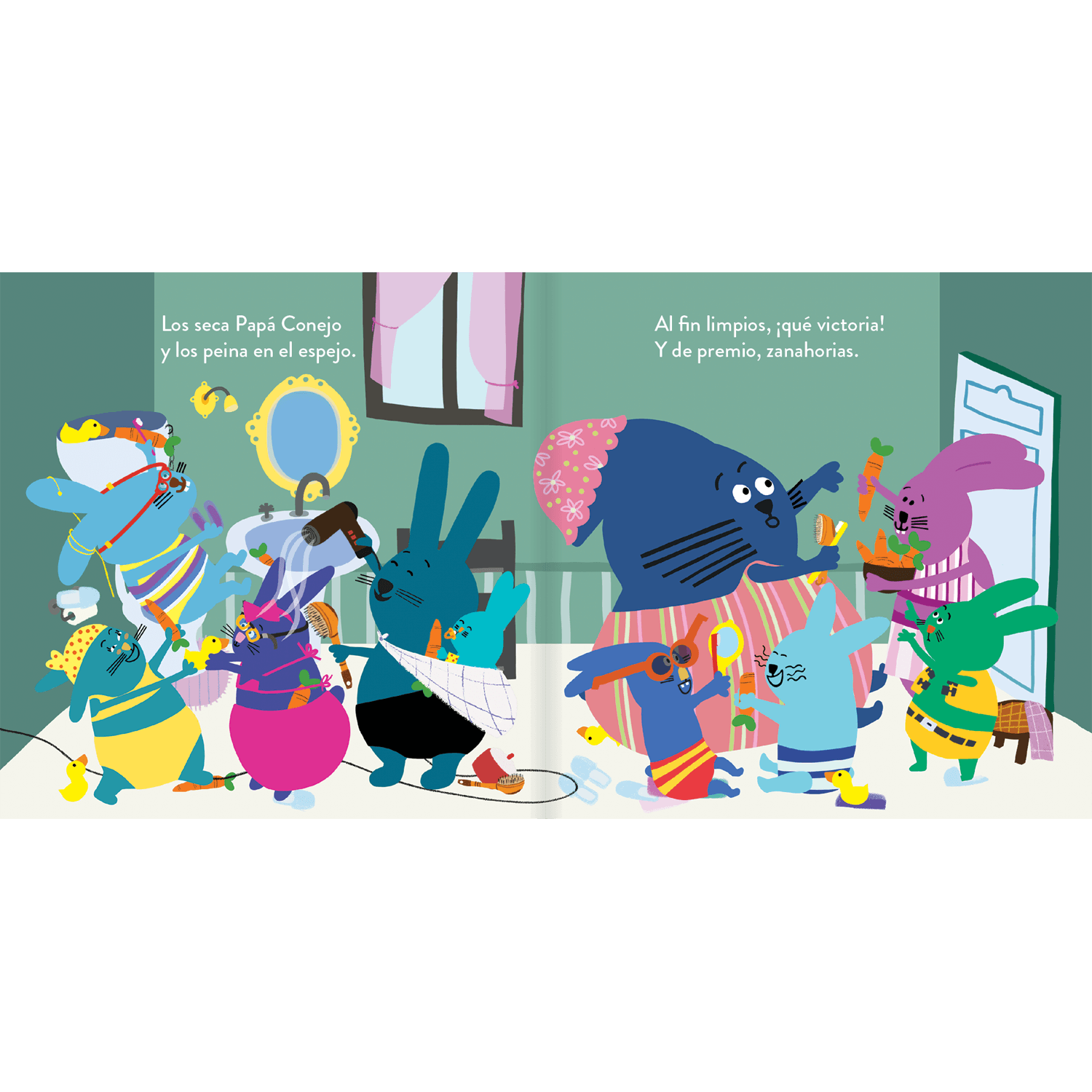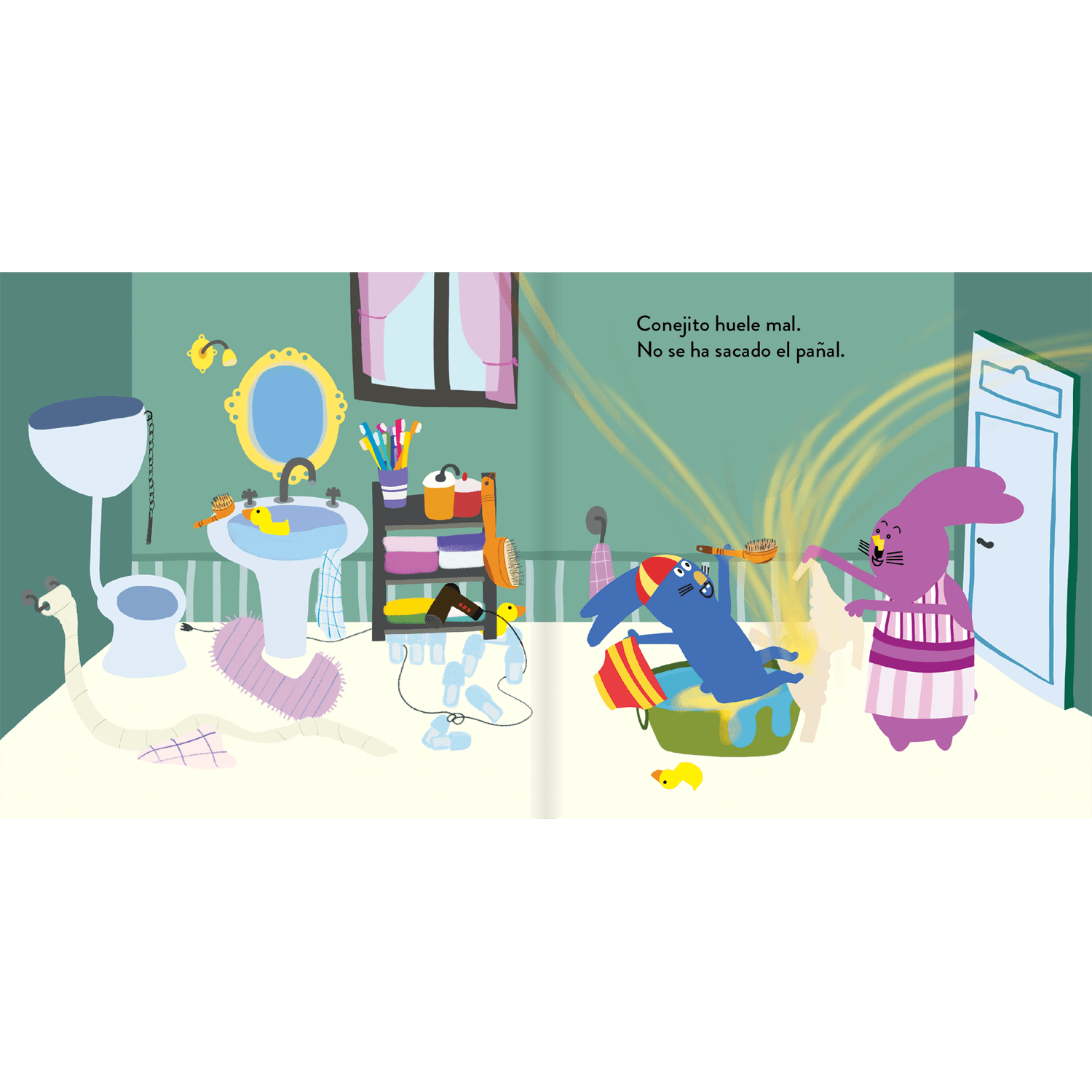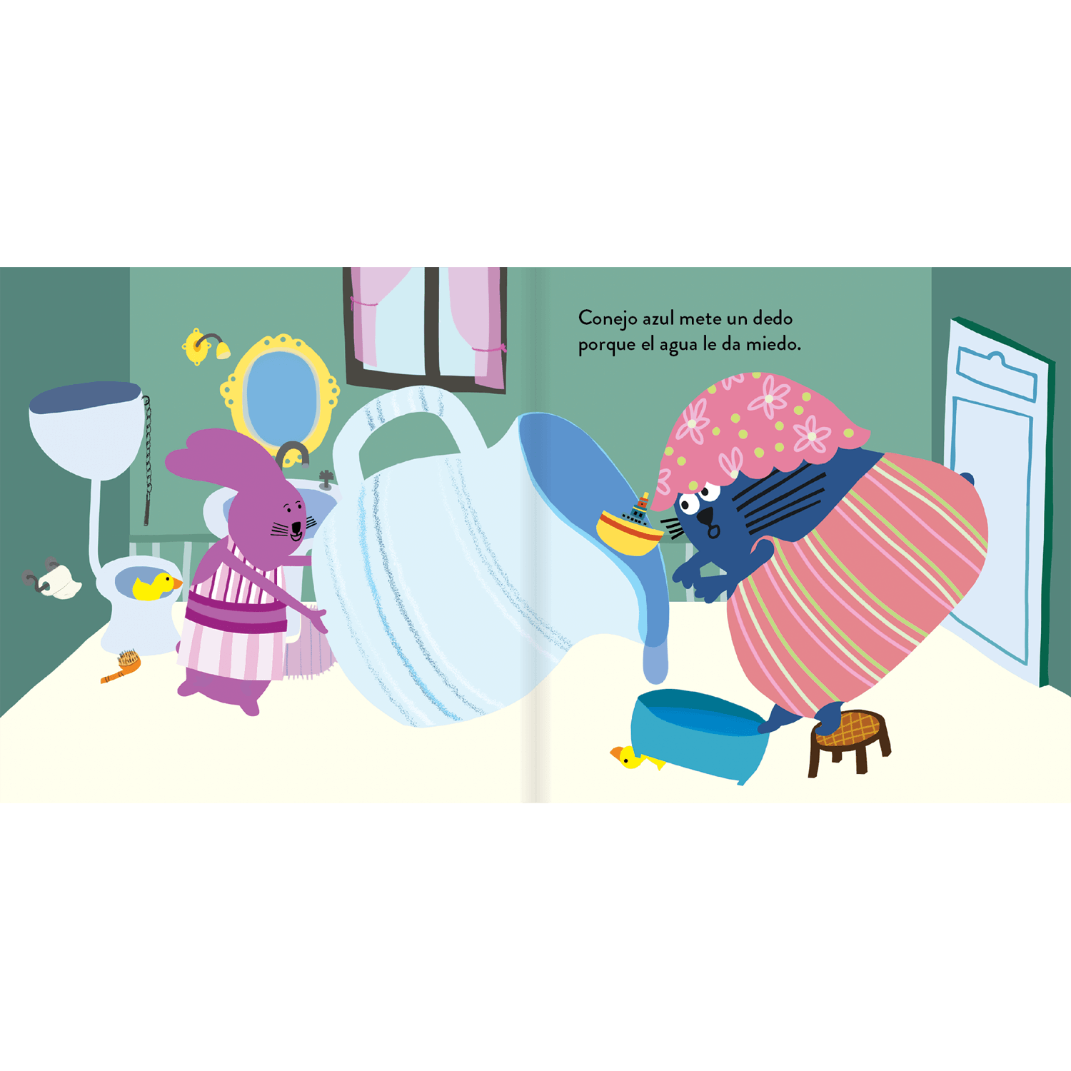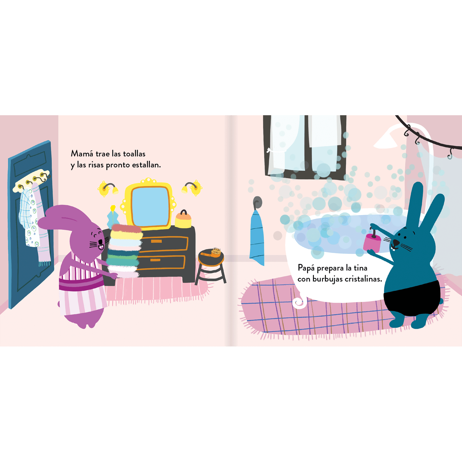 La hora del jabón reúne a una familia de conejitos alrededor de la tina. Cada uno vive el baño a su manera: con sueño, miedo, risas o ganas de esconderse bajo la espuma. El texto rimado acompaña escenas cálidas que muestran cuidado, juego y cariño en torno a las rutinas de higiene diaria. Es un libro pensado para leer en voz alta, acompañar los primeros baños y ayudar a que niños y niñas asocien la limpieza con momentos de confianza y cercanía familiar.
